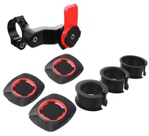 - obsah balení: držák, 3 upínací vložky pro různé průměry řídítek, 3 samolepící adaptéry na telefon/pouzdro, imbusový klíč