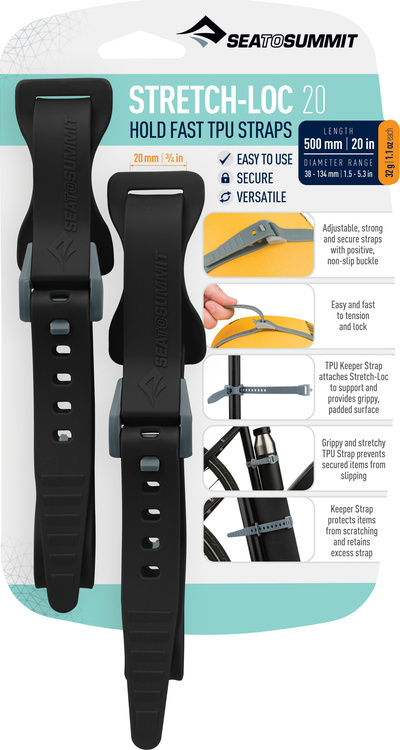 Ať už zdokonalujete své vybavení pro bikepacking nebo připevňujete pádla ke střešním nosičům, popruhy Stretch-Loc jsou nedílnou součástí přípravy na dobrodružství. Pro pevné upevnění jednoduše obtočte mimořádně odolný popruh TPU kolem všeho, co k sobě připevňujete, a zajistěte jej na místě pomocí snadno použitelné protiskluzové spony. Popruhy Stretch-Loc jsou vyrobeny z pevného pružného TPU s tvarovanými přezkami z acetalu. Mají dobrou přilnavost a nemusíte se obávat poškrábání předmětu. Poskytují rovněž odpružení mezi předměty náchylnými k poškození.